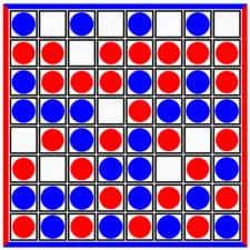 Capture opponent's pieces to open a path from top to bottom sides.